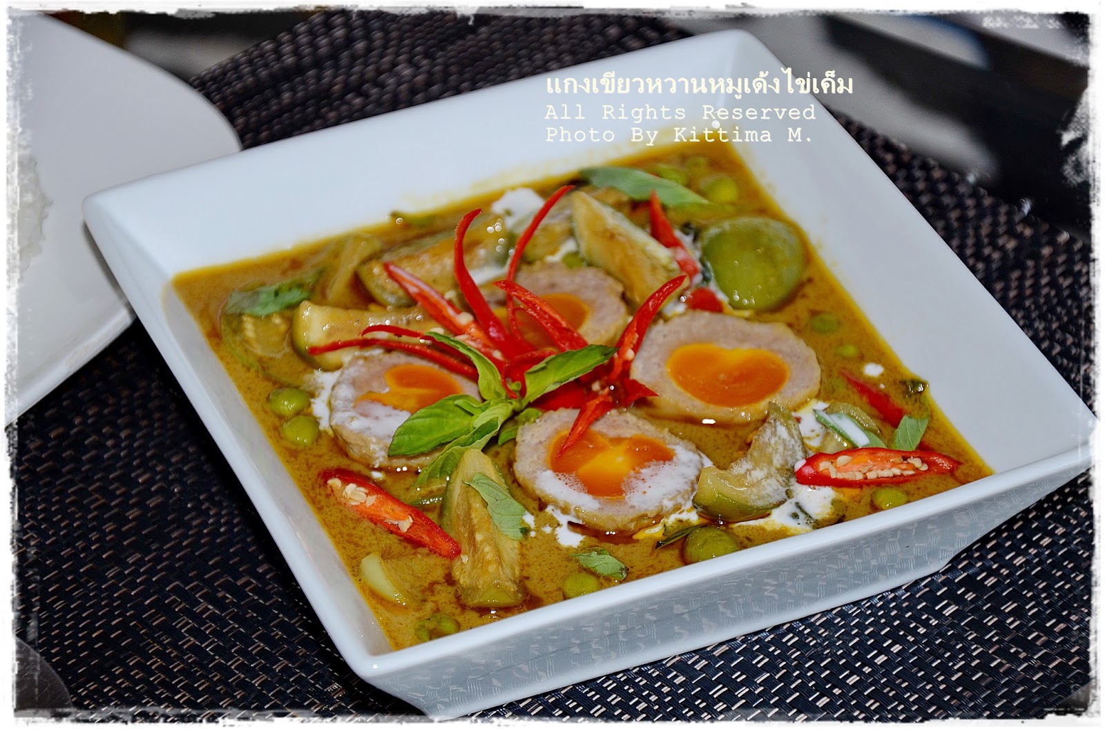 -ขั้นตอนการแกง เริ่มจากตั้งกะทะใส่พริกแกงเขียวหวานสำเร็จรูป
